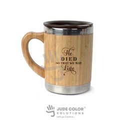 This travel mug has a double walled stainless interior which is encased with bamboo on the outside to give it a stunning finish. It also has a black mat at the bottom which provides extra friction to prevent the cup from toppling over and also prevents annoying noise from the bottom! The lid has a movable section for drinking and therefore it should not be turned upside down whilst holding as the liquid may leak. The bamboo travel mug is ideal for coffee, tea, beverage etc. It is easy to use as you can carry it around anywhere you go because of its light weight!. It can be personalised with your brand logo, a nice quote or a precious message. It is perfect for gift-giving among families, people in love on; Birthdays, Anniversaries, Engagement, Weddings, Token of appreciation and as well as promotional give away items. Each tumbler comes packed in an individual box. -