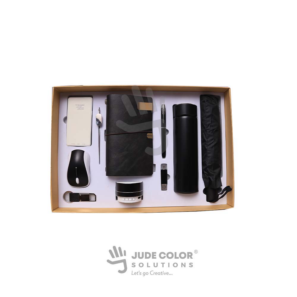 A Giftset contains two or more items that come as a set. Branded giftsets make unforgettable corporate gifts whether it is to say a big thank you to your staff for their commitment and excellence or to show your clients your appreciation for their patronage. This giftset contains a metallic pen, a 500mls thermal flask, a wireless mouse, an 8GB flash disk, a power bank and an umbrella. All there in are gold in colour. The giftset can be personalised with your brand logo, a nice quote or a precious message. It is also perfect for gift-giving among families, people in love on; Birthdays, Anniversaries, as a token of appreciation and as well as a promotional give away item to promote your brand. -
