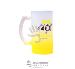 This gradient yellow colour glass is frosted and large enough for you to enjoy your water, cola, sprite, beer, cocktail or juice. This glass can be customised to make it an amazing glass set. It is also a perfect choice of serving glass for bars and restaurants. It can as well be personalised with your brand logo, a nice quote or a precious message. It is perfect for gift-giving among families, people in love on; Birthdays, Anniversaries, Engagement, Weddings, Token of appreciation and as well as promotional give away items especially for Hotels, Bars and Restaurants. -