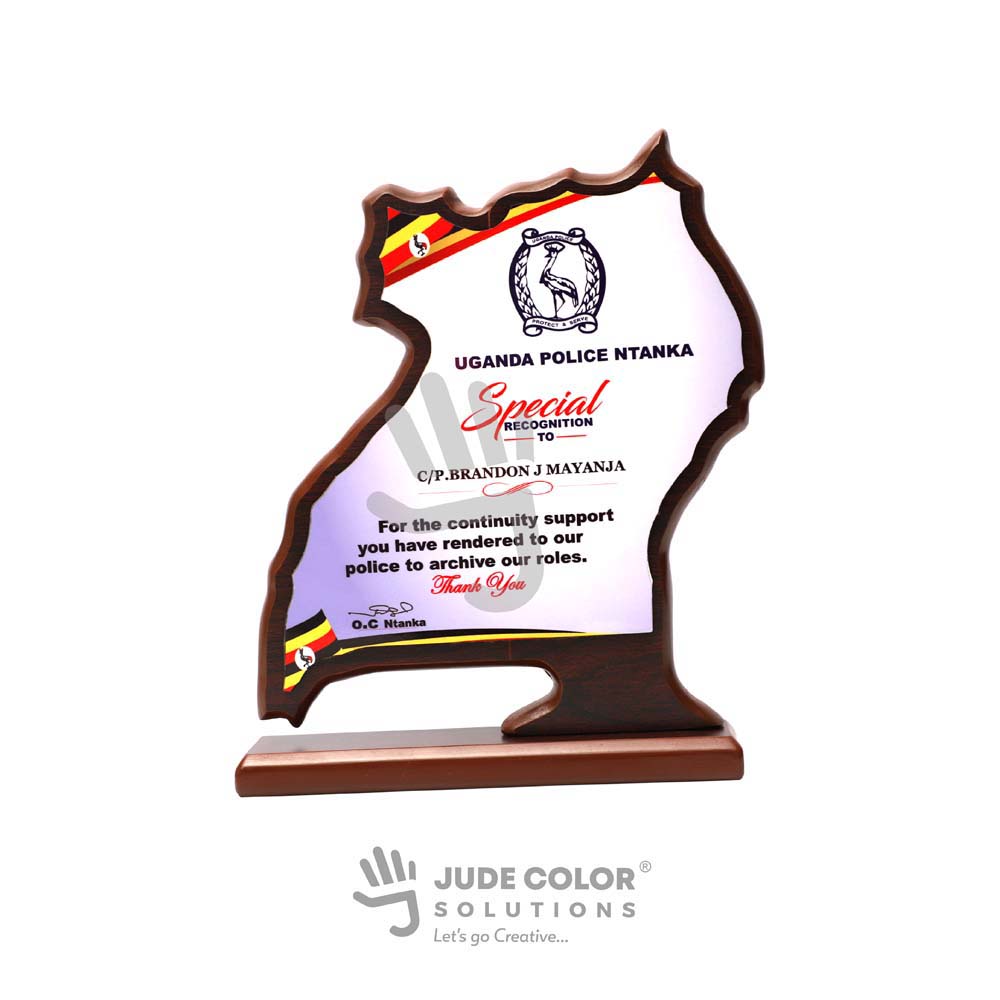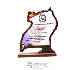Recognize success and achievement within your company, group, team, or organization with this custom-made wooden award. Map of Uganda wooden awards are a classic way to recognize such achievements and are a thoughtful and lasting way to show your appreciation and gratitude for someone who has excelled in their capacity. Map of Uganda wooden awards are timeless, elegant, and have a classic Ugandan look. When used, they give your event a professional appearance. You can present this wooden plaque award to your loved ones, friends,employees returning to their home countries, and relatives as personal gifts, souvenirs, family gifts, or Wedding gifts in appreciation of what they have done for you.Quick ViewOrder Now